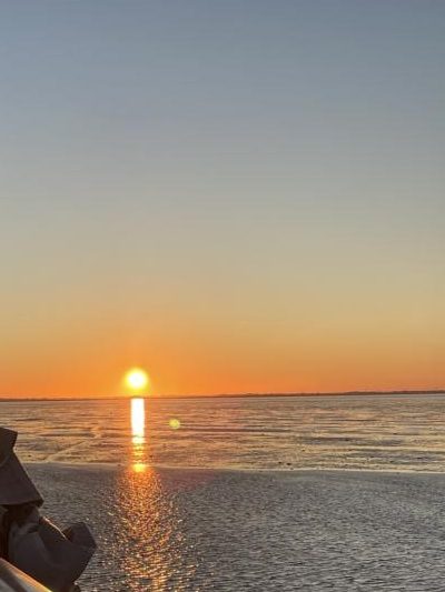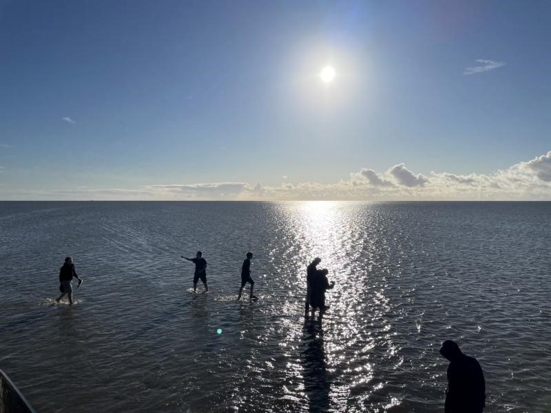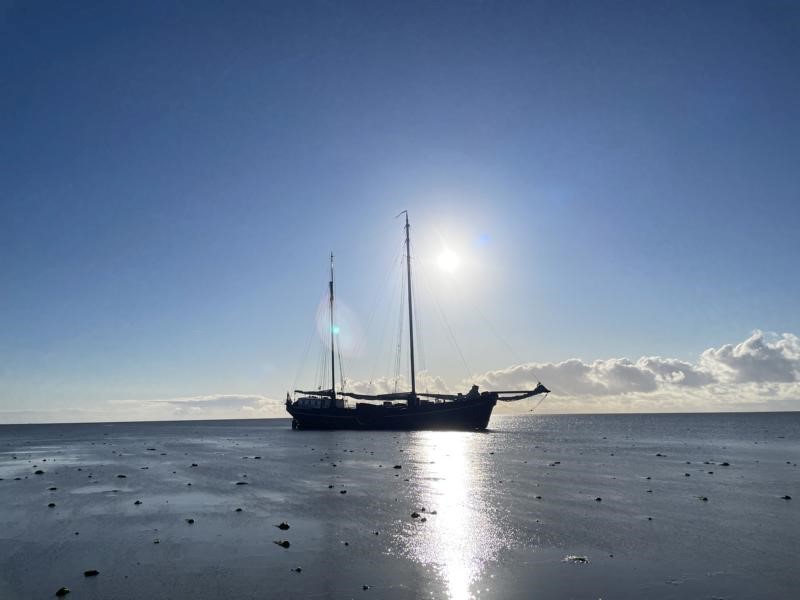 Am Dienstagstand ein besonderes Ereignis an. Wir sind trocken gefallen, d.h. dass wir mitten auf dem Wattenmeer übernachtet haben. Weil bei Ebbe das Wasser zurückgeht, setzte unser Segelboot auf einer Sandbank auf. Zuerst gingen wir bei geringerem Wasserstand etwas schwimmen und ein paar Stunden später machten wir eine kleine Wattwanderung mitten im nirgendwo. Dort entdeckten wir Quallen, Muscheln und Seesterneuvm.– das war ein echtes Highlight.