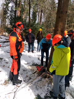 Auch wie man einen Baum richtig und sicher fällt, erklärte uns der Förster.