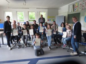 Am 2. Mai war es endlich soweit: Acht Schülerinnen und Schüler der Klasse 3a und 3b bekamen ihre Urkunden der „Pausenengel“ von ihrem Schulleiter Herrn Wetter überreicht. Über mehrere Wochen hinweg, lernten sie in Rollenspiele die Aufgaben eines Pausenengels kennen. Die Schulsozialarbeiterinnen Frau Specht und Frau Fritz leiteten die Ausbildung.