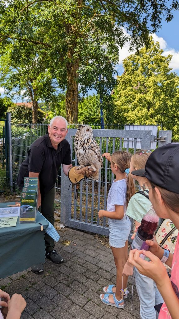 Als Kooperationspartner waren Herr Herold vom Kuhnweiler Hof in seiner Funktion als Wolfsexperte für die Gesellschaft zum Schutz der Wölfe, Familie Wiesinger von der Greifvogelanlage Wüstenrot nebst zwei Greifvögeln und die Naturparkführerin Frau Reiss mit Informations- und Mitmachangeboten vertreten. Die Bewirtung übernahm der Förderverein der GKS. Unser herzlicher Dank gilt besonders dem Förderverein, allen Eltern und SchülerInnen, die das Kollegium tatkräftig beim Auf- und Abbau und der Durchführung des Festes unterstützt haben und dem Grundschulchor unter Frau Marx für die musikalische Umrahmung. Wir KollegInnen der Grundschule ziehen nach der Veranstaltung ein positives Fazit und bereiten uns auf eine Neuauflage im kommenden Schuljahr vor.