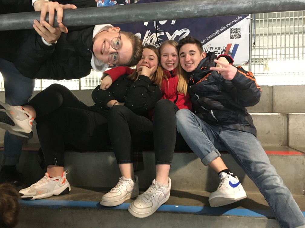 Am Freitag, den 21. Februar 2020 waren ein paar Schülerinnen und Schüler aus den Lerngruppen 9a/b und c bei einem Eishockeyspiel in Heilbronn. Wir haben uns alle um 19.00Uhr vor der Eishalle getroffen, um das Spiel der Heilbronner Eisbären gegen den EC Eppelheim anzuschauen. Um 20.00Uhr ging das Spiel dann endlich los. Anfangs wussten wir nicht genau für welches Team wir jubeln sollten, da beide Mannschaften einen Eisbären auf dem Trikot trugen. Aber anhand des Maskottchens konnten wir letztendlich die Heilbronner Eisbären ausmachen und erkennen. Das Spiel war sehr interessant mit zu verfolgen. Schon im ersten Drittel führten die Heilbronner Eisbären mit einem Vorsprung. In der 20minütigen Pause präsentierte uns Heilbronn ihre Eiskunstläufer und sie zeigten uns eine kleine Choreographie begleitet von einem Spieler der Heilbronner Eisbären am Flügel. Im zweiten Drittel ging es mit der Glückssträhne der Heilbronner Eisbären gleich weiter. Selbst ein Gegentor konnte sie nicht aus der Fassung bringen. Am Ende des zweiten Drittels stand es schließlich 8:1. Auch das zweite Gegentor, welches die Heilbronner Eisbären im dritten Drittel kassierten, machte ihnen nichts aus. So gewannen sie schließlich mit einem Endstand von 8:2. Jubelnd, glücklich und voller neuer Eindrücke starten wir nun in die Faschingsferien, die sich unsere Lehrer Anna Lena Kappe und Stefan Bodenmüller nach solch einem Abend mit uns auf jeden Fall verdient haben.