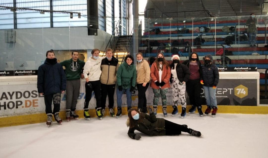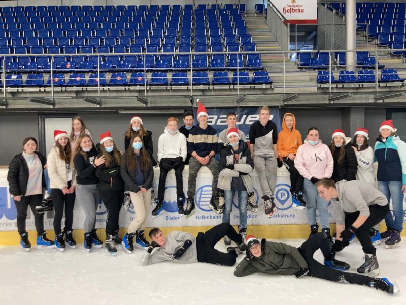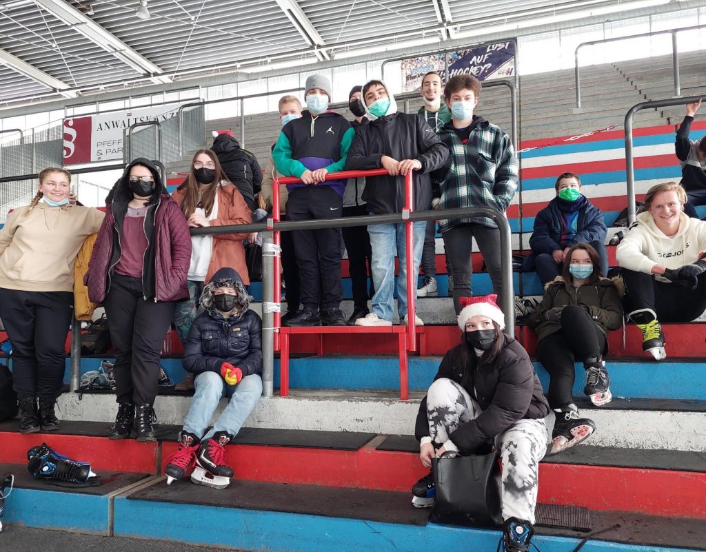 Am 21.12.2021 gingen wir, die Klassen 9a und 9b mit Frau Kappe und Frau Holderbach in der Kolbenschmidt Arena in Heilbronn Eislaufen. Um 8:20 Uhr kam unser Bus und wir fuhren alle gemeinsam zur Eishalle. In der Eishalle angekommen, liehen sich einige von uns Schlittschuhe aus und dann ging es auch schon auf‘s Eis. Obwohl ein paar von uns noch nicht so gut Schlittschuh fahren konnten, hatten wir alle viel Spaß. Nach einer kurzen Eingewöhnung auf dem Eis, machten wir Wettrennen, übten das Rückwärtsfahren oder liefen einfach nur gemeinsam in der Gruppe ein paar Runden.