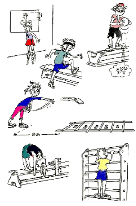Wir lernten den standardisierten Münchner Fitness Test kennen. Bei diesem werden anhand von sechs Testaufgaben sämtliche motorische Fähigkeiten wie Kraft, Schnelligkeit, Ausdauer, Koordination und Beweglichkeit getestet.