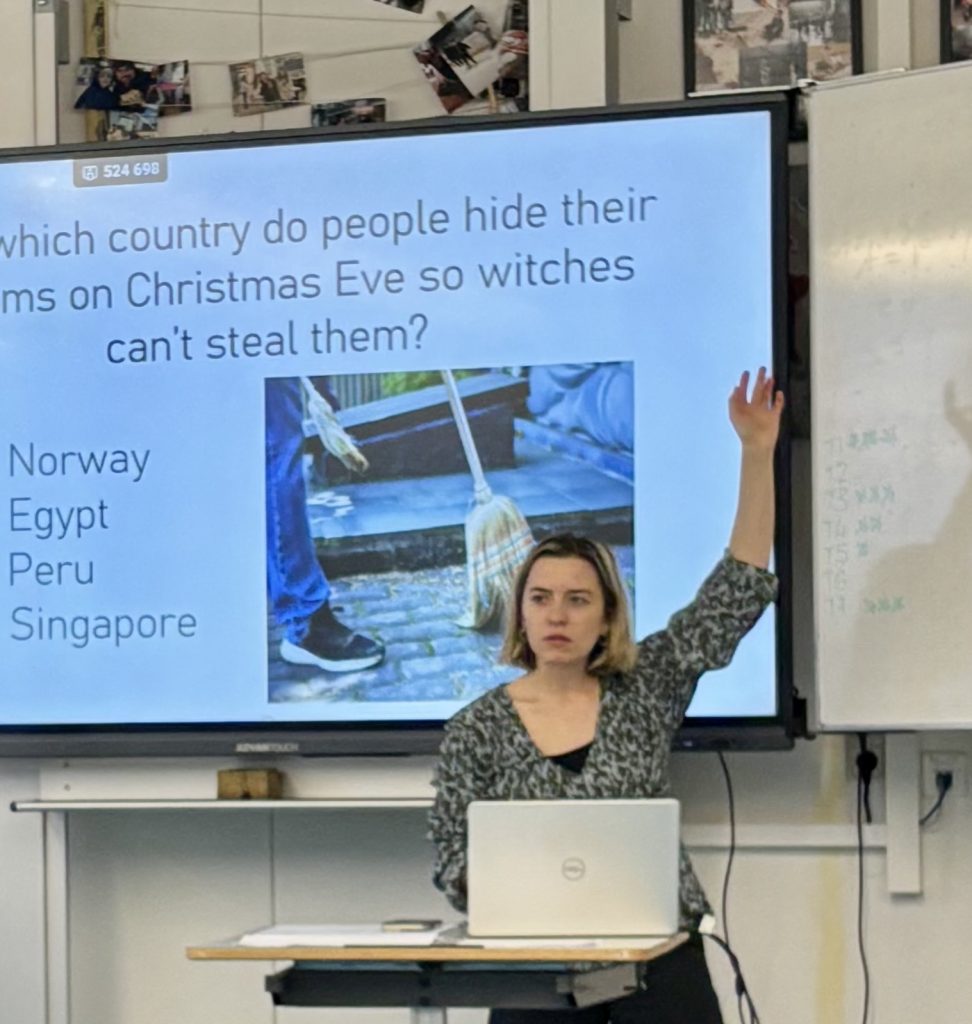 Die SchülerInnen erzählten von ihren eigenen Weihnachtstraditionen. So bekam auch Caitie spannende Einblicke in deutsche und weitere internationale Bräuche – und alle merkten: Englisch kann man super nutzen, um über sich selbst und die eigene Kultur zu sprechen.