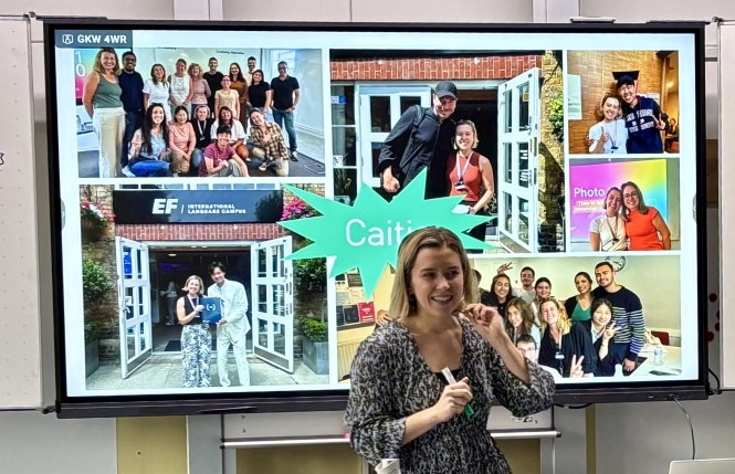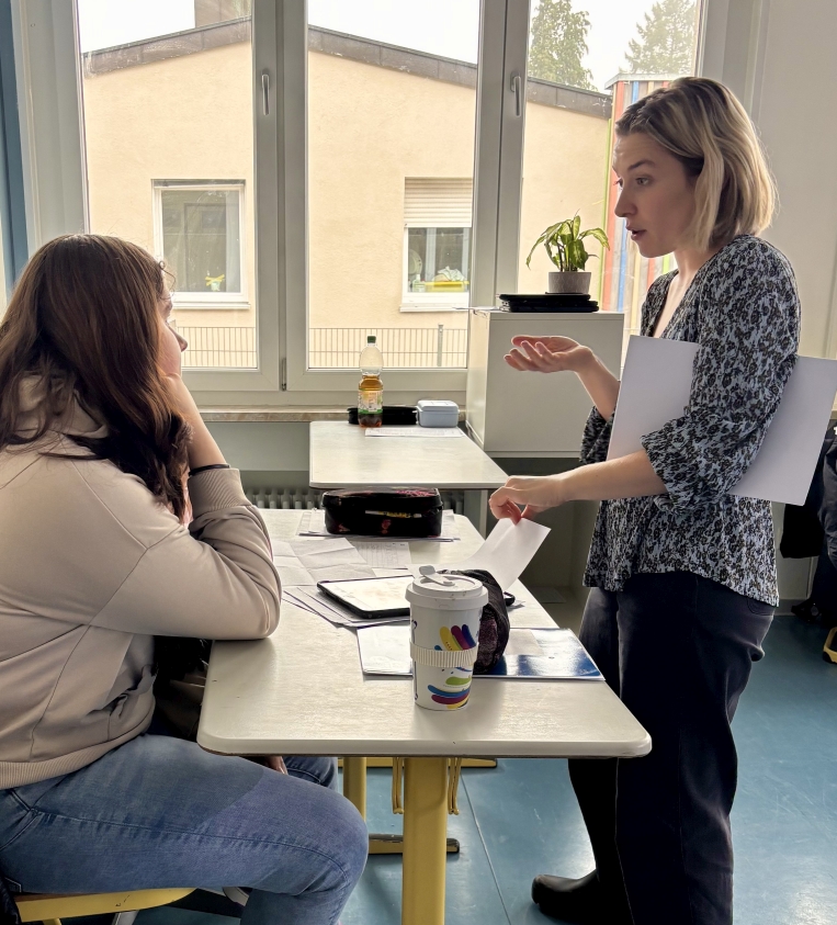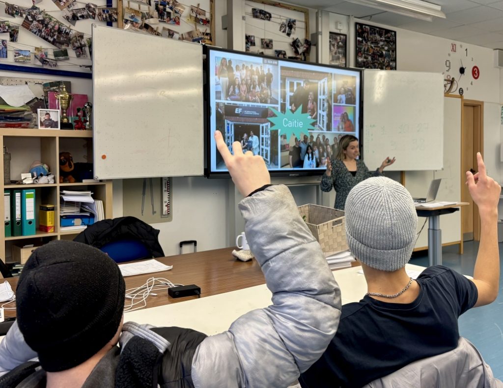 Im Rahmen der Aktion „Teacher on the Road“ war die englische Muttersprachlerin Caitie aus London zu Gast. Begleitet wurde sie von einer Vertreterin von EF, Education First, die kurz auf die Arbeit und die Angebote des Sprachinstituts einging.