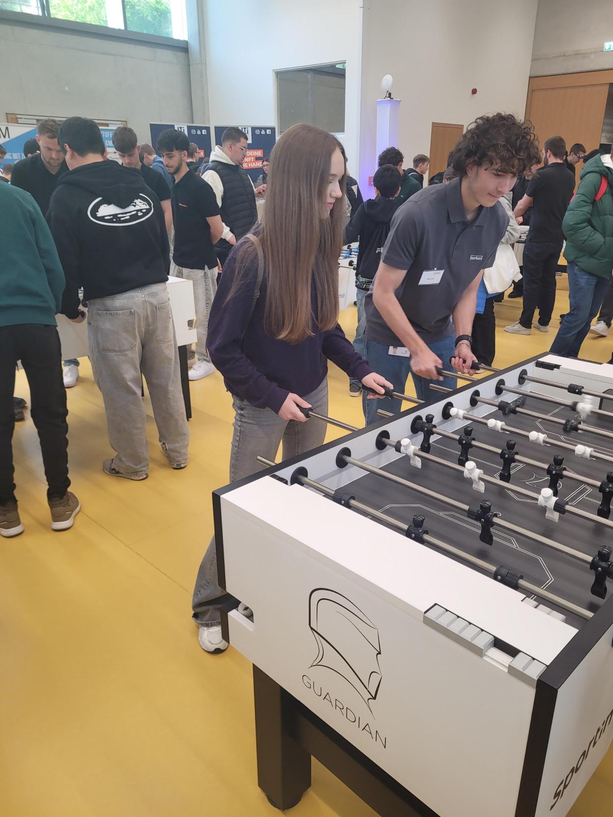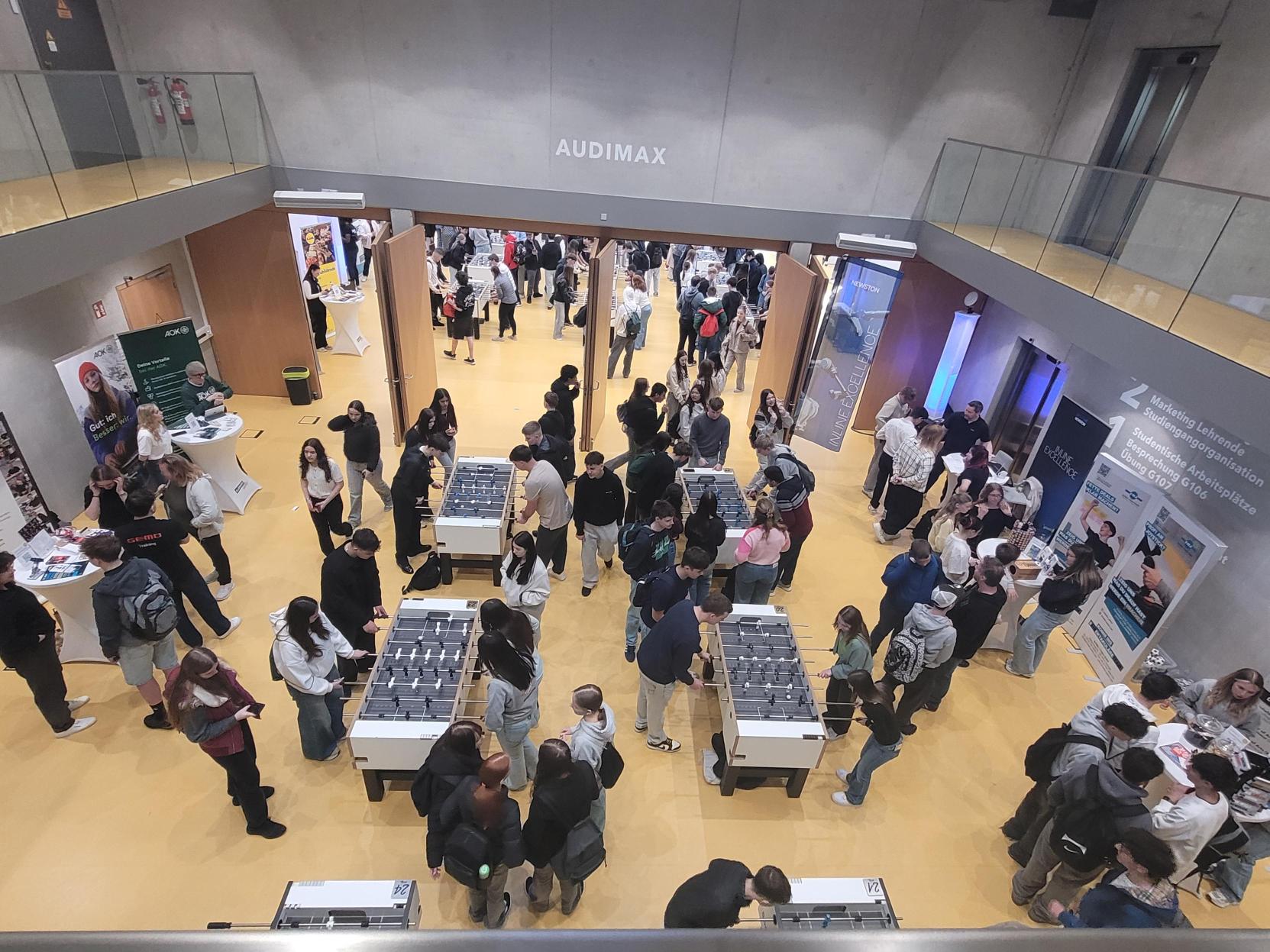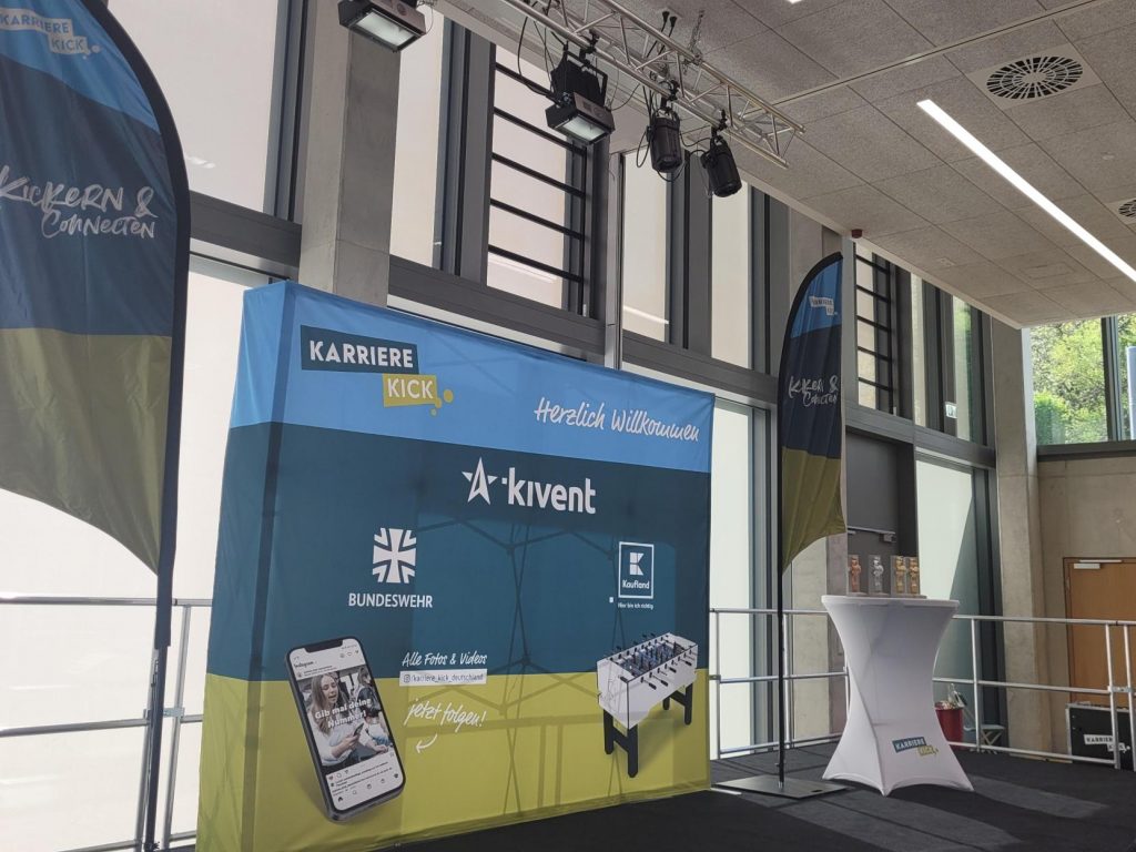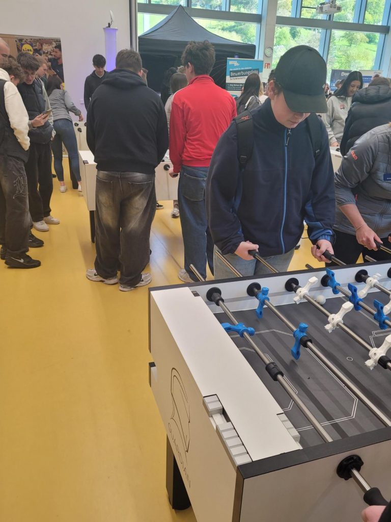 Bei der Karriere Kick-Veranstaltung in Künzelsau am 24.4.26 in den Räumlichkeiten der Reinhold-Würth-Hochschule in Künzelsau wurde Netzwerken mal ganz anders gedacht. Statt klassischen Gesprächen am Tisch gab es zwei Möglichkeiten mit Firmen in Kontakt zu kommen, entweder locker beim Tischkicker-Spiel oder gezielt bei einem gebuchten Termin am Stand der jeweiligen Unternehmen.