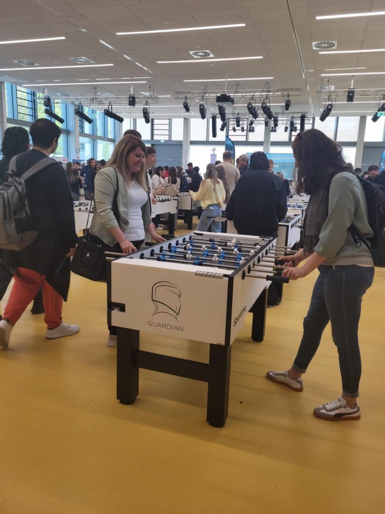 Zusätzlich konnten alle jederzeit durch die Messestände schlendern und sich in den Pausen, ergänzend zu den Tischkicker-Spielen und den gebuchten Gesprächsterminen, weiter über die Unternehmen informieren.