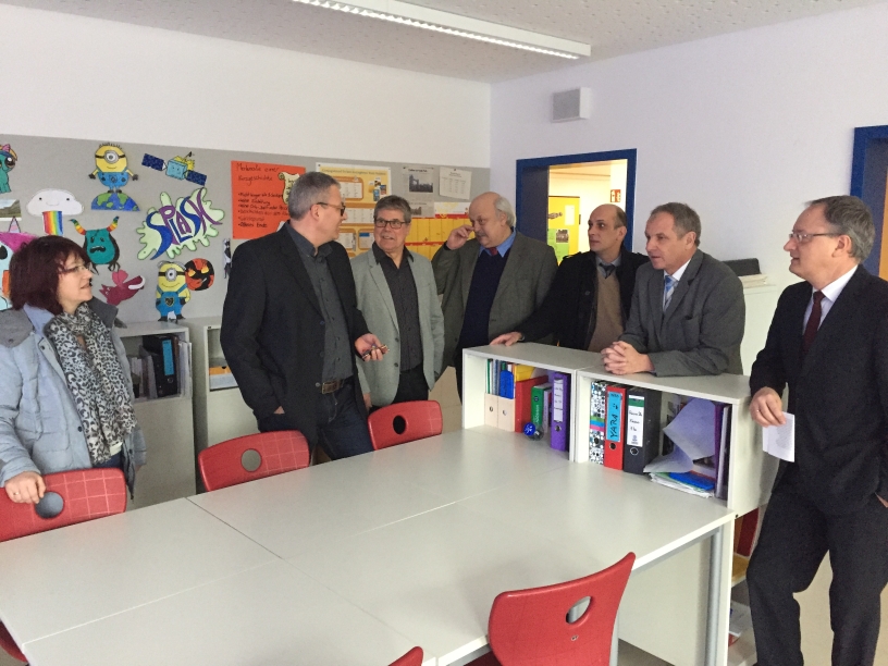 Am Montag, den 13.02.2017, kamen Kultusminister a.D. Andreas Stoch und Innenminister a.D. Reinhold Gall in die Georg-Kropp-Schule nach Wüstenrot. Seit dem Schuljahr 2012/13 – und damit als eine der ersten im Land – ist die GKS Gemeinschaftsschule. Die Abgeordneten machten sich in einem Rundgang ein Bild von den neuen Klassenzimmern, die mit moderner Technik ausgestattet sind. So wurden allein in den Naturwissenschaftsraum 100.000 Euro investiert.