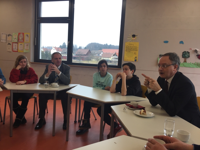 Zusammen mit Schulleiter Peter Wetter, dessen Vorgänger Peter Wagner, Bürgermeister Timo Wolf, der Elternbeiratsvorsitzenden Julia Zügel und mehreren Schülerinnen und Schülern diskutierten die beiden Landtagsabgeordneten über die Entwicklung der Gemeinschaftsschule in den letzten Jahren. Eltern, Lehrer und Schüler zeigten sich von dem Konzept überzeugt.