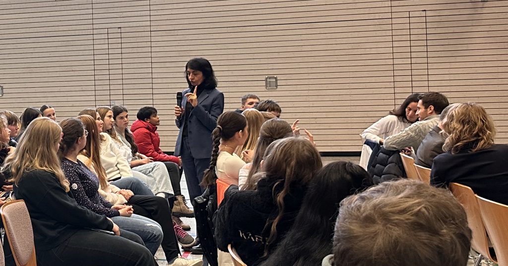 „Ihr dürft alles fragen- ob politisch oder privat. Alle Fragen sind erlaubt.“ Frau Aras stand den Schülern der 8. bis 10. Klassen der Georg-Kropp-Schule Wüstenrot am 18.01.2024 Rede und Antwort.