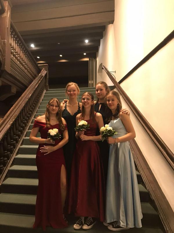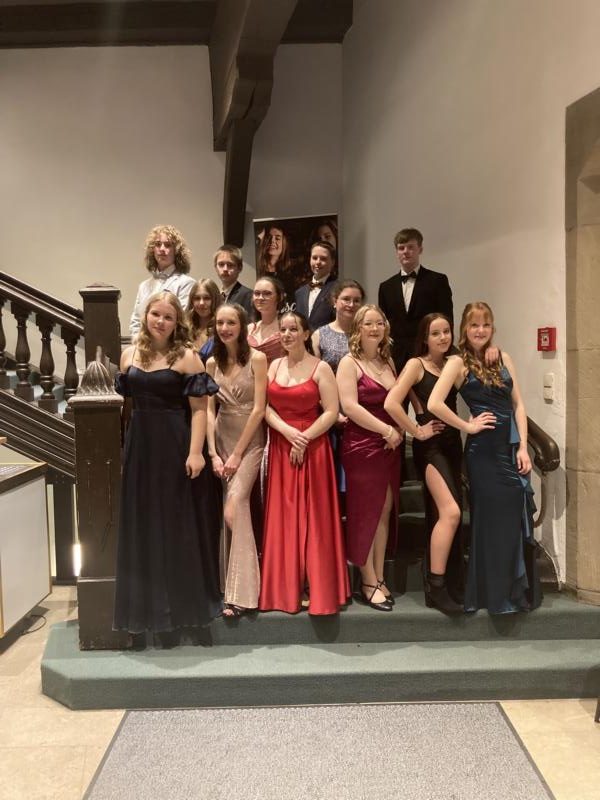 Am Sonntag, den 10.03.2024, stand nach einem halben Jahr hartem Tanztraining unser Abschlussball vor der Tür. Hierfür übten ein Teil der 8-10 Klässler jeden Dienstag 60 Minuten in ihrer Mittagspause in der Georg-Kropp Halle. Unter den scharfen Augen von Farina, der Tanzlehrerin aus der Tanzschule Egger, wurde wöchentlich nicht nur das Tanzbein geschwungen, sondern auch die Hüften kreisen gelassen. Anfangs fiel uns das noch ziemlich schwer, aber mit der Zeit wurden wir immer lockerer und die Bewegungen zum Takt verliefen geschmeidiger.