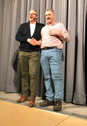 Es gab bei dieser Schulversammlung aber leider auch einen traurigen Moment. Unser, schon zum Inventar gehörender und allseits beliebter Hausmeister Jürgen Steiner, hatte heute seinen letzten Arbeitstag. Als der Lehrerchor den stimmungsvollen Klassiker „Wunder geschehen immer wieder“ gesungen hat, waren nicht nur Schüler und Lehrer, sondern auch Herr Steiner sehr gerührt.