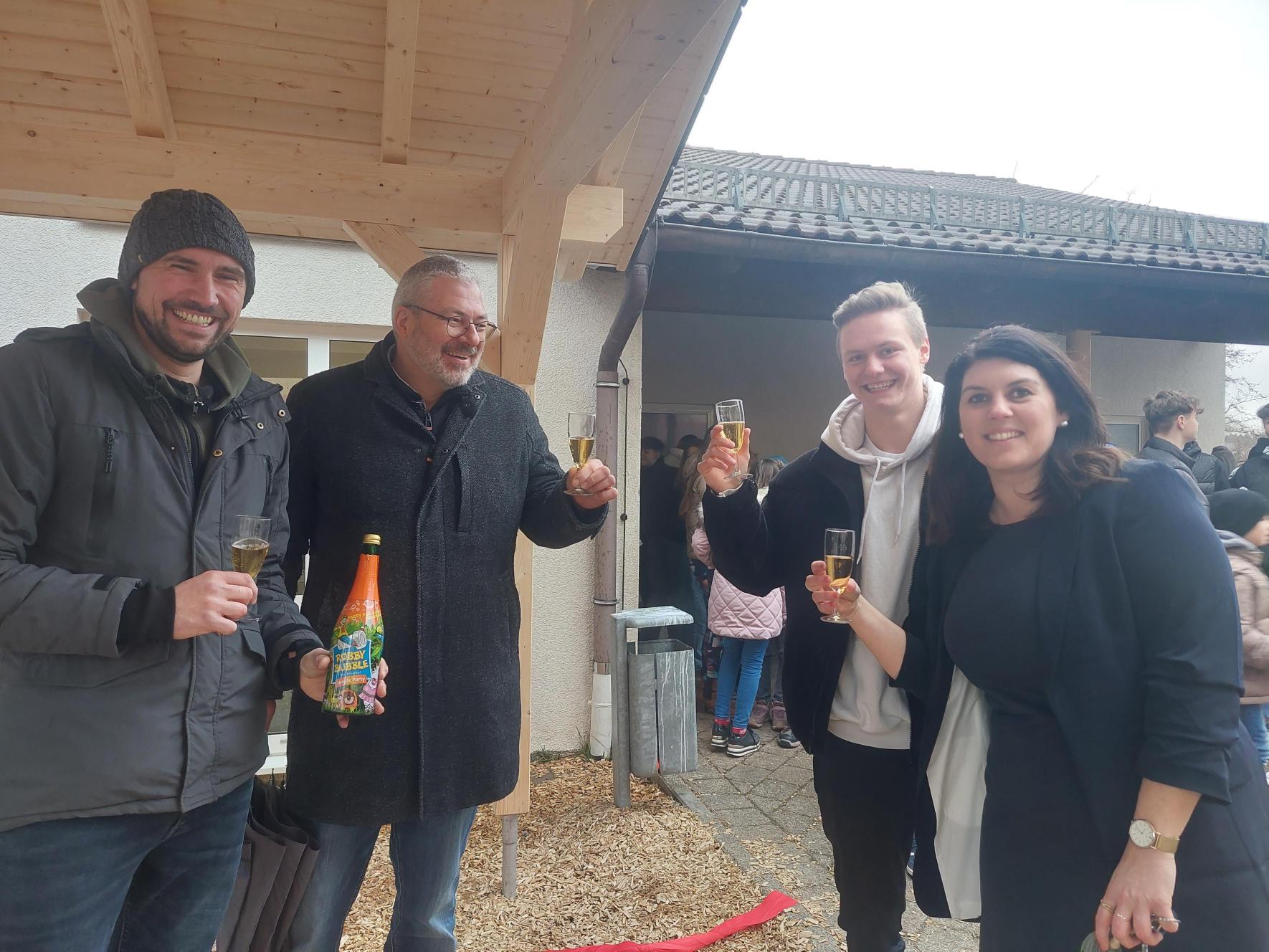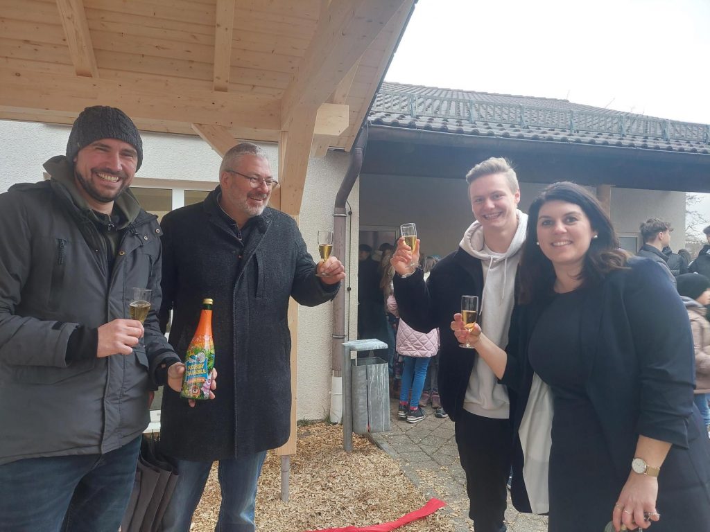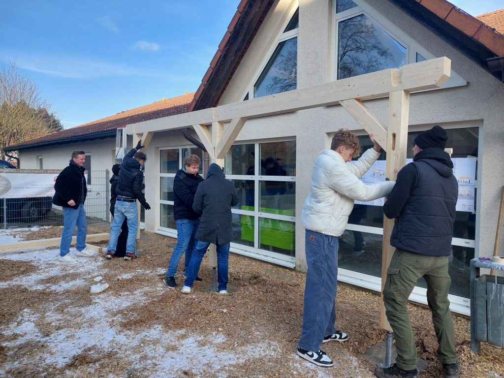 Das Fundament legte der Bauhof der Gemeinde Wüstenrot nach Plan von Herrn Marotta. Am 28. Februar 2023 wurde das Material geliefert und unter Anleitung des Zimmermannmeisters von den Schülern der 10. Klassen zusammengebaut und aufgestellt. Am darauffolgenden Dienstag wurde die große Pause genutzt, um ein kleines Richtfest in Anwesenheit aller Schülerinnen und Schüler zu feiern.