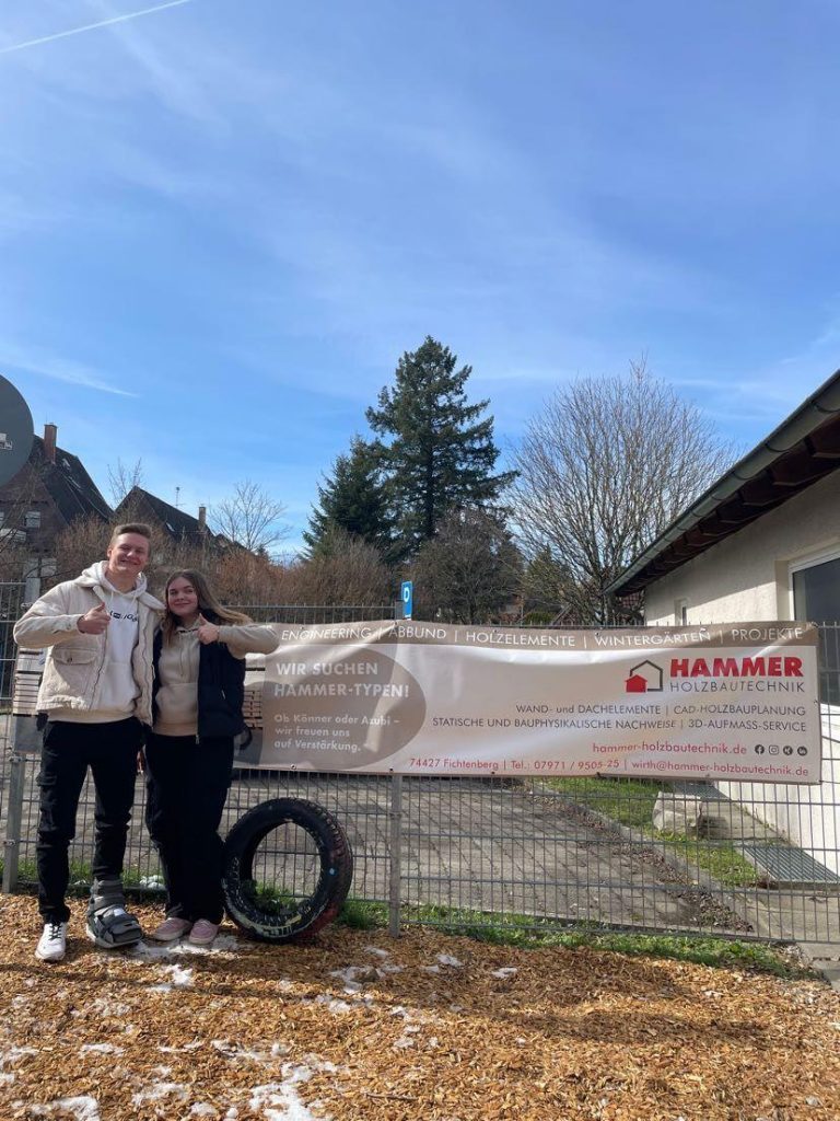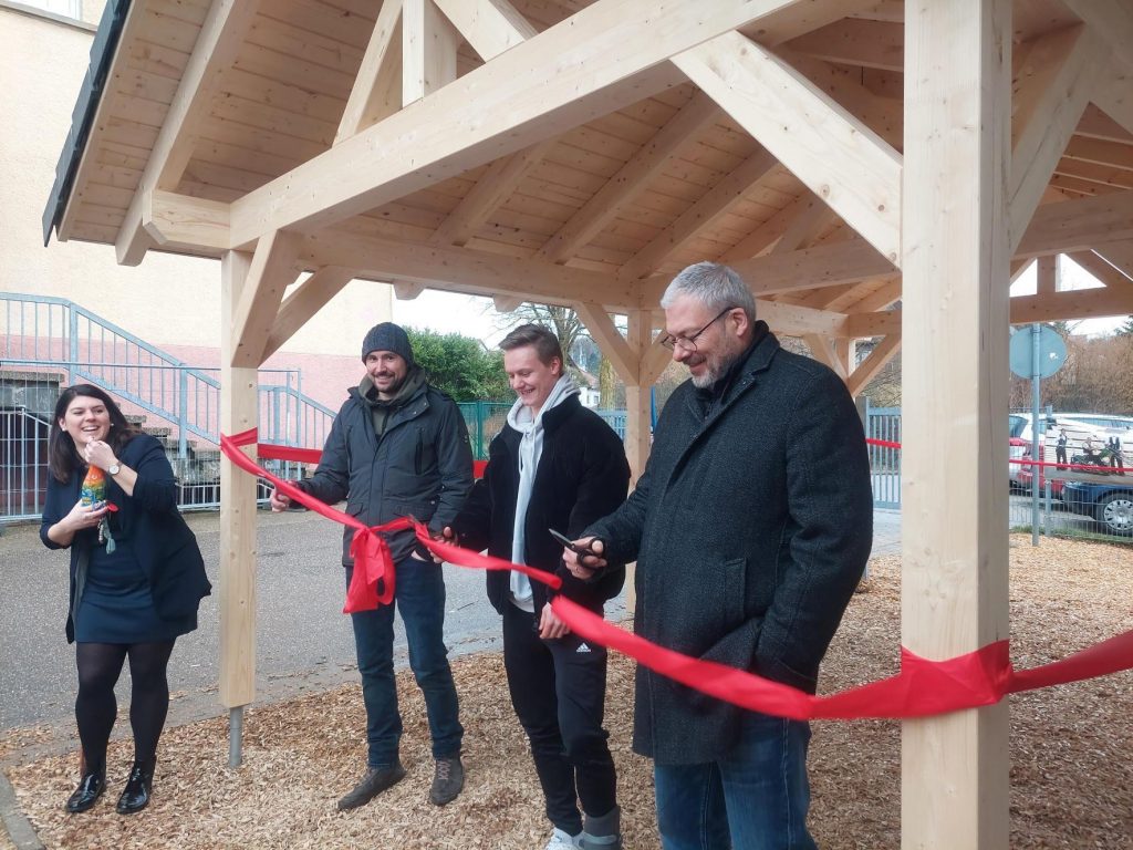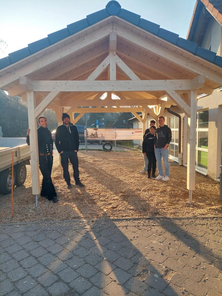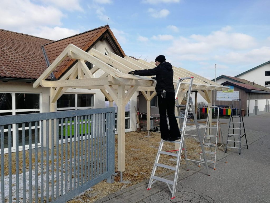 Die Firma HAMMER Holzbautechnik GmbH aus Fichtenberg bot schnell ihre Hilfe an und Zimmermannsmeister Michele Marotta übernahm die gesamte Planung. Er kümmerte sich um das benötigte Holz und ging auf Sponsorensuche. So hatte die SMV am Ende nur ein Fünftel der Gesamtkosten zu tragen, weil der eifrige Handwerksmeister noch andere Sponsoren mit ins Boot holte. Das Material für den Unterstand sponserten die Firmen „HAMMER Holzbautechnik GmbH“, „KEITEL Haus“ und „Wiedmann Baustoffgroßhandel und Baufachmärkte“.