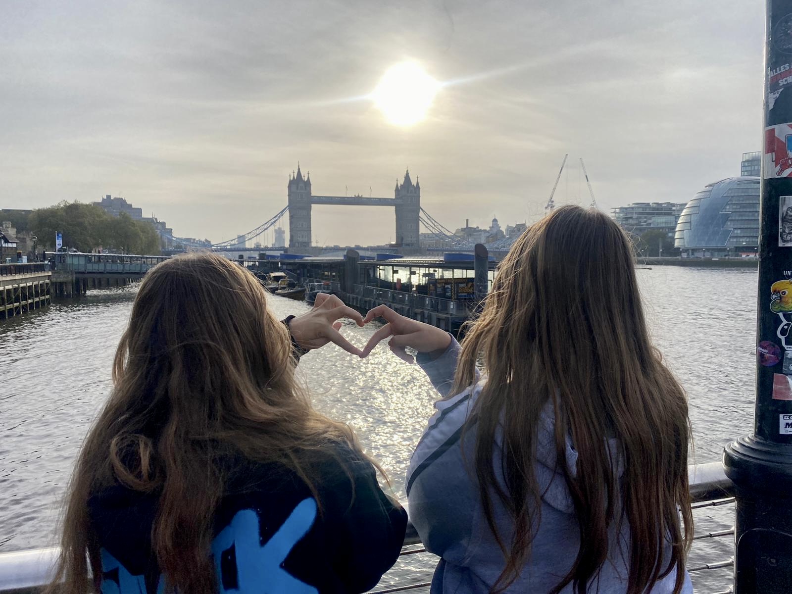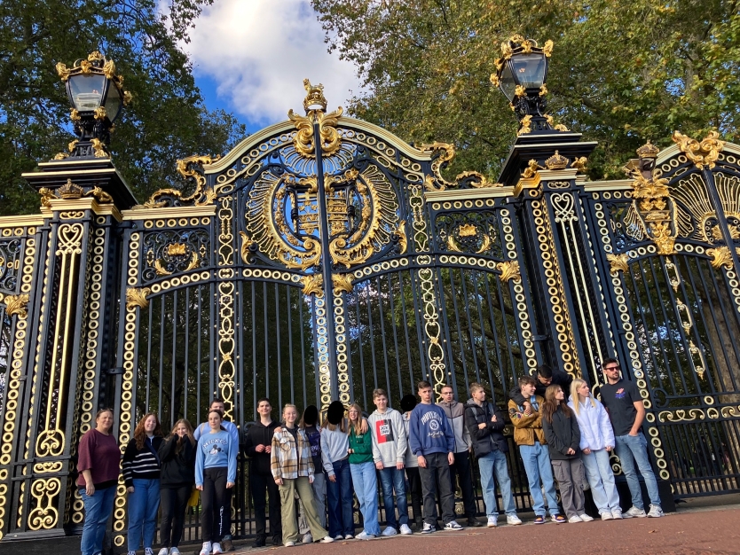 Am Sonntag, den 22.10.23, brachen endlich wieder 18 SchülerInnen der Lerngruppen 9 zusammen mit Frau Houggati, Herrn Bodenmüller und Frau Ossig zu einer Sprachreise nach London auf. Nach einer 4-jährigen Coronapause war die Vorfreude groß. Ganz nach dem Motto „the early bird catches the worm“ starteten wir bereits um 7 Uhr morgens unseren Flug von Stuttgart nach London Heathrow. Trotz der Tatsache, dass viele SchülerInnen zum ersten Mal überhaupt in einem Flugzeug saßen, verlief alles reibungslos. Da wir erst am Abend zu unseren Gastfamilien konnten, begannen wir unsere Reise mit einer Fahrt in den „City Centre“, um dort unser Gepäck zu lagern und gemeinsam London zu erkunden. Dank unserer frühen Ankunft um 8 Uhr Ortszeit konnten wir bereits am ersten Tag eine Menge von London sehen und entdecken. Unsere Tour startete am Piccadilly Circus, der uns einen lebhaften Eindruck von der Metropole vermittelte. Nachdem wir in Kleingruppen das Gebiet zwischen dem Piccadilly Circus und dem Leicester Square erkundet hatten, machten wir uns nach einem ausgiebigen Besuch im „M&M’s World Megastore“ zu Fuß auf den Weg zum Buckingham Palace. Obwohl an diesem Tag leider nicht die königlichen Wachen mit ihren charakteristischen Pelzmützen patrouillierten, beeindruckte uns der Ort enorm. Vor dem Besuch unserer Gastfamilien rundeten wir den Tag mit einem Besuch der Tate Modern Gallery ab, von deren Terrasse aus man einen beeindruckenden „view“ über London hat. Als wir uns schließlich auf den Weg nach Sydenham machten, um unsere Gastfamilien kennenzulernen, hatte uns London nicht nur strahlendes Wetter zur Begrüßung, sondern auch einen Rucksack voller Eindrücke von unserer ersten Fahrt mit der Londoner Underground bis hin zu einem Potpourri an unterschiedlichsten Menschen und atemberaubenden Kulissen, geschenkt.
