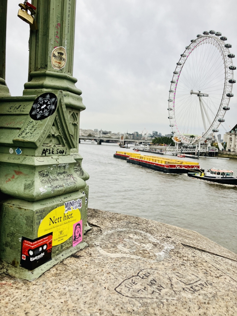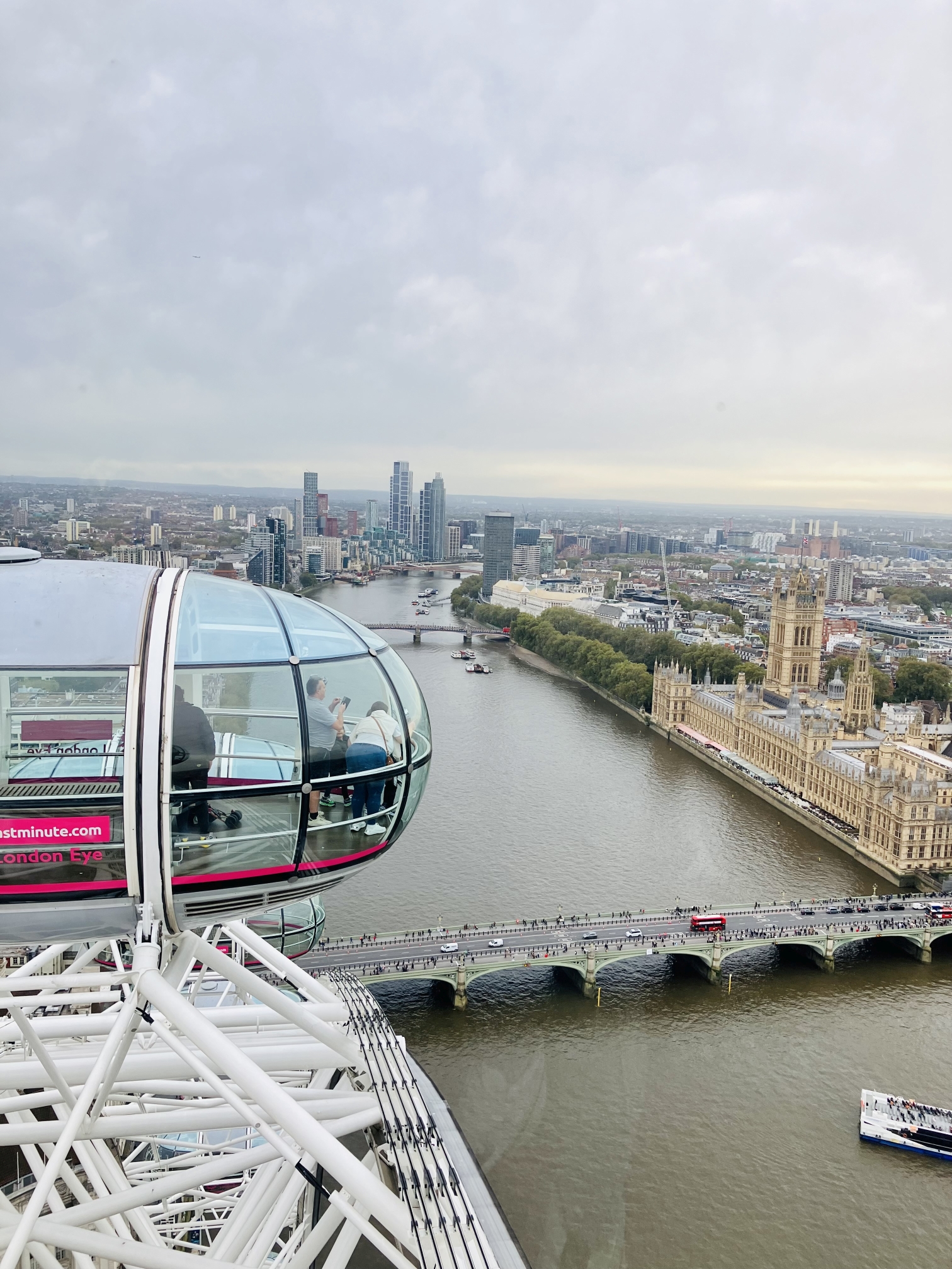Am Montag führte uns unser Weg zunächst zum Tower of London. Aufgrund des bevorstehenden Halloweenfestes waren unser Besuch und die Umgebung von „creepy“ und „scary creatures“ geprägt. Verkleidete Schauspieler, wie zum Beispiel Geisterbräute, lauerten hinter jeder Ecke, um uns zu erschrecken. Ein Besuch der „Crown Jewels“ durfte natürlich nicht fehlen. Eine Fotosession mit der berühmten Tower Bridge vor und aus dem Tower heraus gehörte genauso zum Pflichtprogramm wie das obligatorische Souvenirshopping. Anschließend entschieden wir uns spontan für eine Fährfahrt mit der Thameslink und genossen die Aussicht auf dem Wasser, während wir Richtung Westminster fuhren. Dank des guten Wetters konnten wir die Sehenswürdigkeiten in vollen Zügen genießen und den unterhaltsamen Erklärungen des Guides lauschen. Nachdem wir uns von Big Ben verabschiedet hatten, stürzten wir uns in das Gewimmel der Oxford Street zum Shoppen. Den ereignisreichen Tag rundeten wir mit einer Fahrt im London Eye ab. Hier wurden wir erneut mit einem atemberaubenden Blick auf die Sehenswürdigkeiten Londons belohnt.