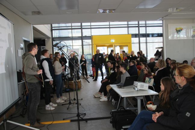 Schulleiter Peter Wetter begrüßte die Besucher in der Georg-Kropp-Halle, wo die Schülerband, die Eltern-Lehrer-Band und der Eltern-Lehrer-Chor mit Musik für lockere Stimmung sorgten. Hier lud der Förderverein der Schule die Gäste auch mit Bewirtung zum Verweilen und Genießen ein.