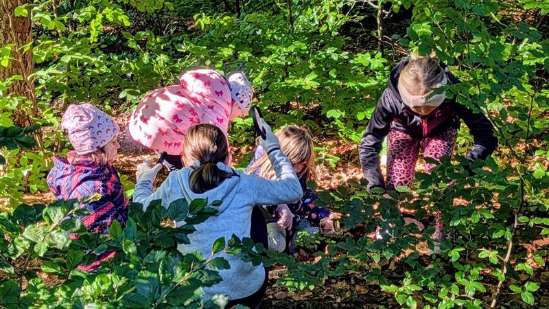 Im Anschluss begaben sich die Kinder zu verschiedenen Mitmachstationen im Wald. Dabei standen Erleben, Entdecken und kreatives Gestalten im Vordergrund. Auf dem Pirschpfad konnten die Kinder ihre Beobachtungsgabe unter Beweis stellen. Bei der Schatzsuche galt es, die „Früchte des Waldes“ zu finden – von Tannenzapfen bis hin zu bunten Blättern. Besonders spannend war die Station „Blind den Wald entdecken”, bei der die Kinder mit Augenklappe und entlang eines Seils den Wald einmal ganz anders erfuhren.