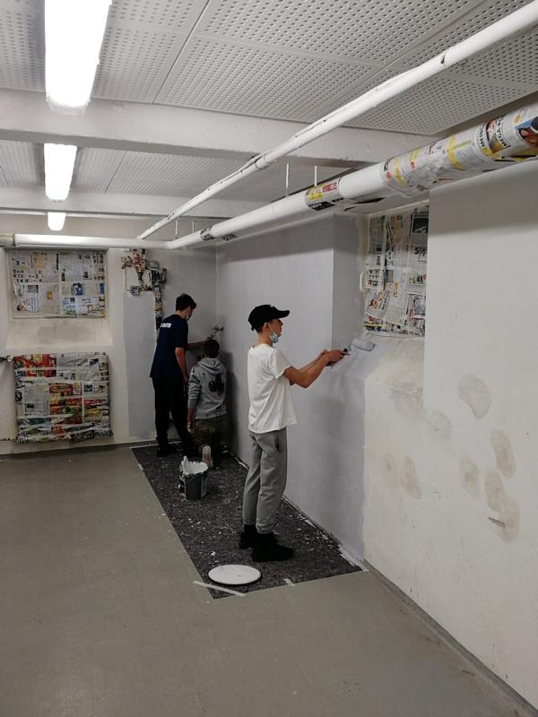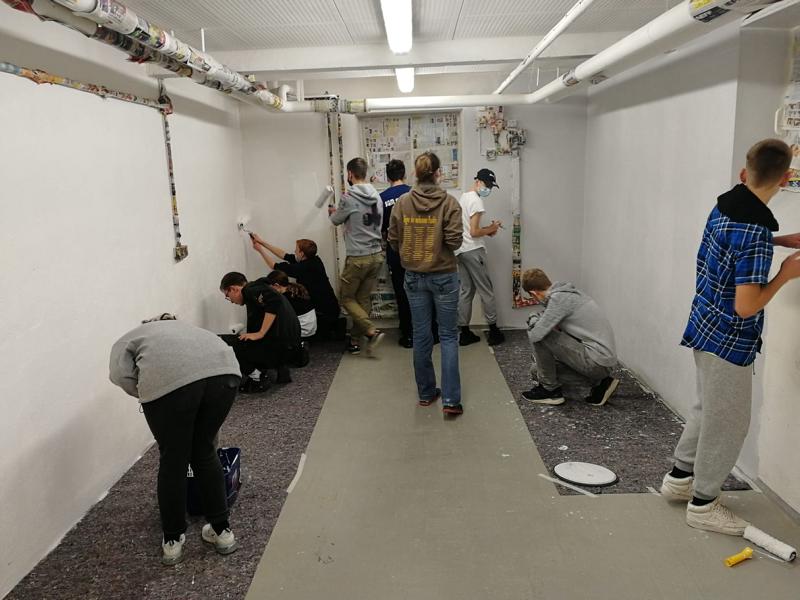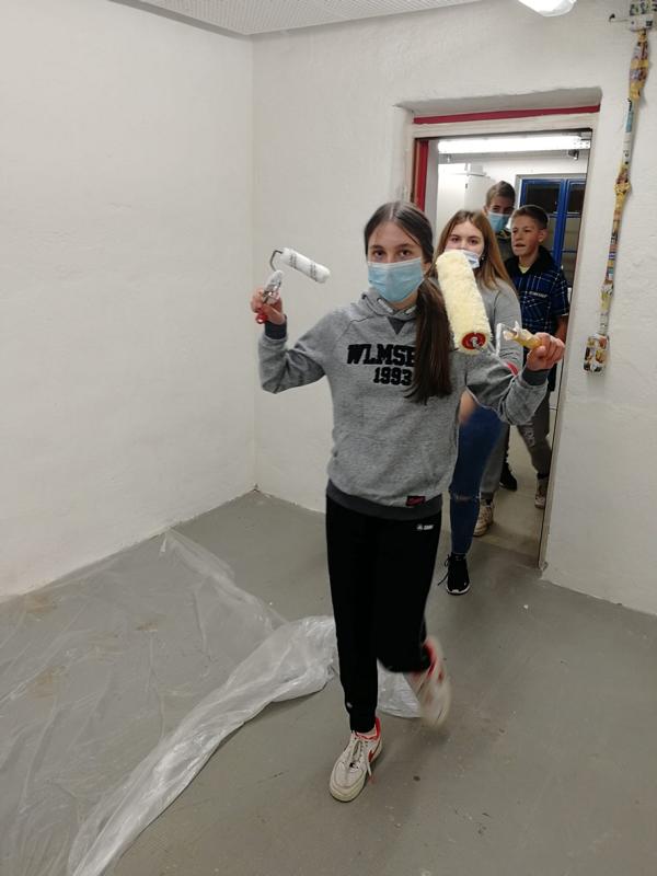 Letzte Woche, am Mittwoch den 24.11.2021 startete das Projekt „Chill-Lounge“. Schneller als gedacht war die ehemalige Rumpelkammer, Dank der tatkräftigen Unterstützung und der vielen fleißigen Helfer aus den Lerngruppen 10, ausgemistet und ausgeräumt. Ebenso zügig und flott wurden von den Neuntklässlern einen Tag später die Kabelkanäle, Steckdosen, Fenster und Heizung abgeklebt sowie der Raum gestrichen. Die Abstellkammer ist nicht wieder zu erkennen und erstrahlt nun in einem sanften grau.